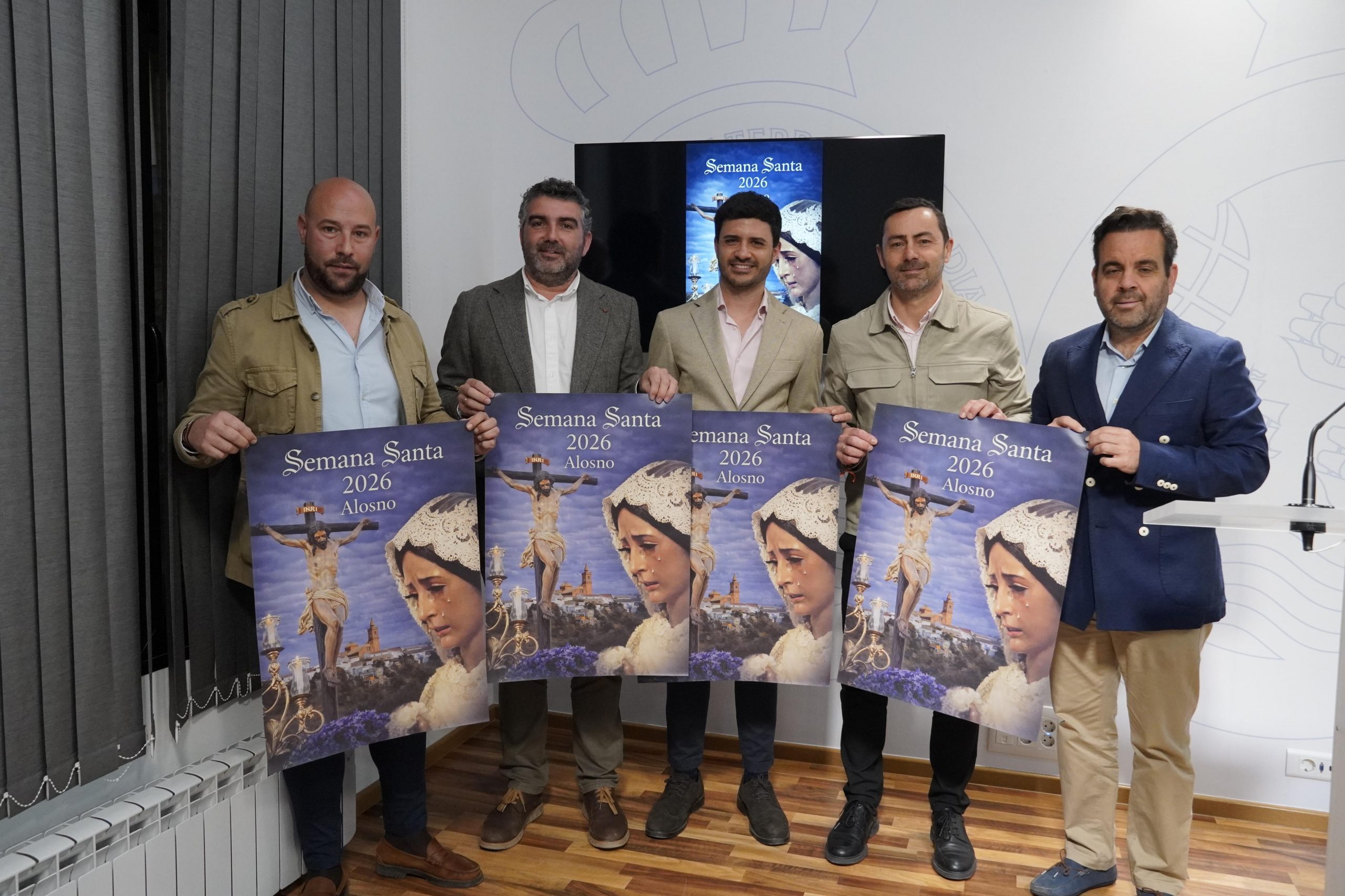 Alosno se prepara ya intensamente para vivir su Semana Santa, cuyo cartel anunciador, en este 2026, refleja a los titulares de la Hermandad de Nuestro Señor de la Sangre y María Santísima en su Soledad. La ‘Procesión de los Encuentros’, el traslado del Señor de la Columna, o una procesión infantil son algunas de las estampas que este año volverá a dejarnos la Semana Santa de Alosno y que hoy se ha presentado en la Diputación de Huelva.