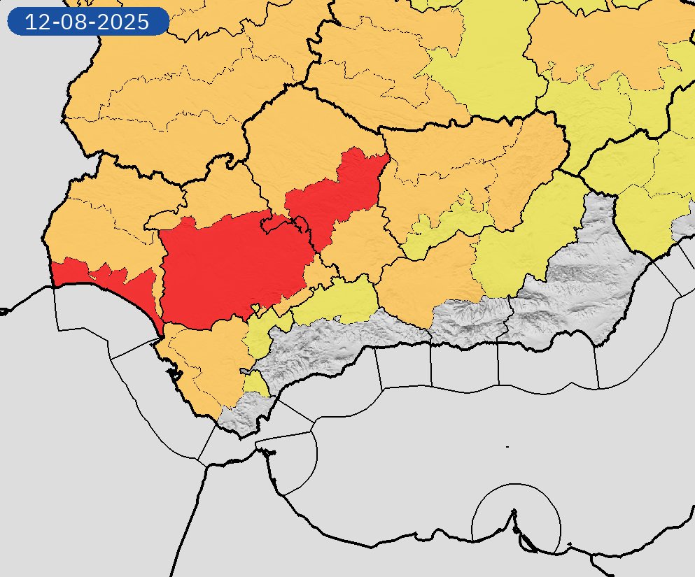 En la comarca onubense de Andévalo y Condado así como en la Sierra y Pedroche y Subbética cordobesa se prevén que los valores alcancen los 43 grados, mientras que los 42 se esperan en Aracena (Huelva), Subbética cordobesa, campiña gaditana y las comarcas jienenses de Valle del Guadalquivir y Morena y Condado. Estos avisos estarán vigentes entre las 13:00 y las 21:00 horas.