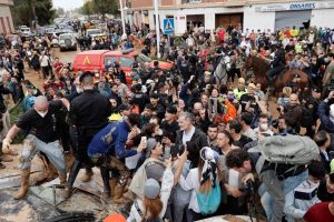 Los reyes Felipe VI y Letizia y la comitiva de autoridades que les acompañaban este domingo en su visita a Paiporta (Valencia), la considerada ‘zona cero’ de la DANA en la provincia, fueron recibidos con gritos e insultos y con lanzamiento de objetos y barro durante su recorrido por las calles de la localidad. «Fuera, fuera»; «mentirosos»; «perros» o «asesinos» han sido algunos de los insultos que se han podido escuchar.