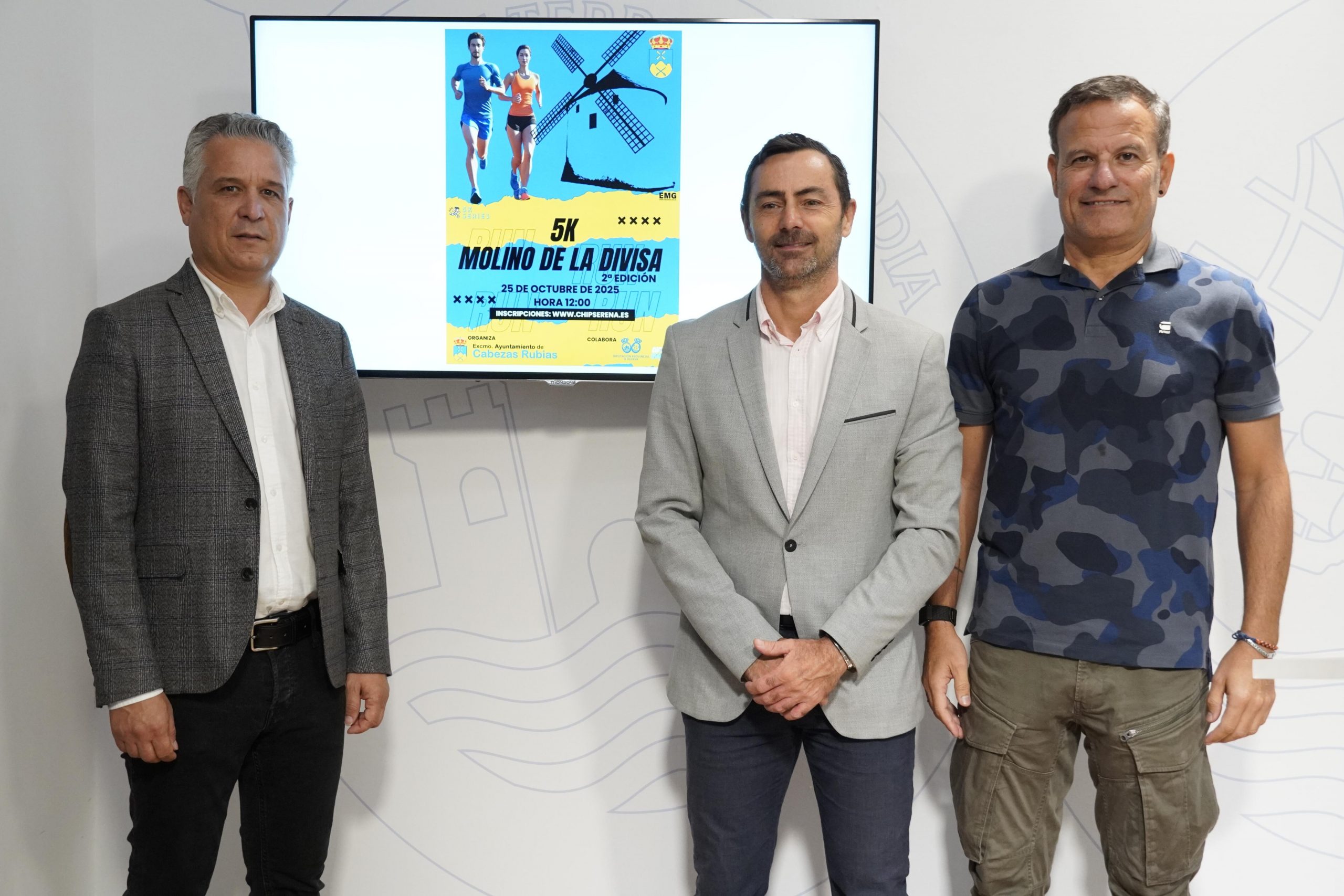 Cabezas Rubias acogerá el próximo 25 de octubre la disputa de la segunda edición de la 5K Molino de la Divisa. Una prueba abierta a la participación de todas aquellas personas que tengan cumplidos los 16 años y que esta mañana se ha presentado en la Diputación de Huelva. El diputado de Deportes de la Diputación de Huelva, Juan Daniel Romero, junto con el alcalde de Cabezas Rubias, Rafael González; y el director técnico de la carrera, Emilio Muñoz, han dado a conocer los detalles de esta carrera que tendrá la plaza de España de la localidad como salida y meta de la prueba.