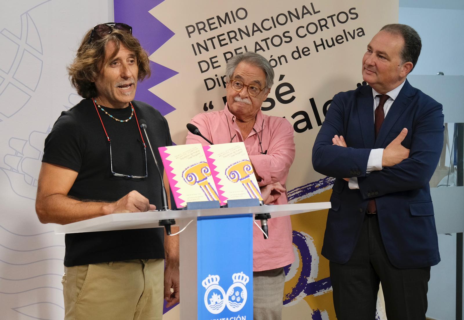 La Diputación de Huelva ha hecho entrega esta mañana del XXX Premio Internacional de Relatos Cortos José Nogales al escritor César de las Heras Cobas, por su obra La historia de adentro. El acto, celebrado en la Sala de Prensa de la institución provincial, ha contado con la presencia del presidente David Toscano y del escritor onubense Juan Villa, miembro del jurado, coincidiendo con la participación de la Diputación en la 49 Feria del Libro de Huelva.
