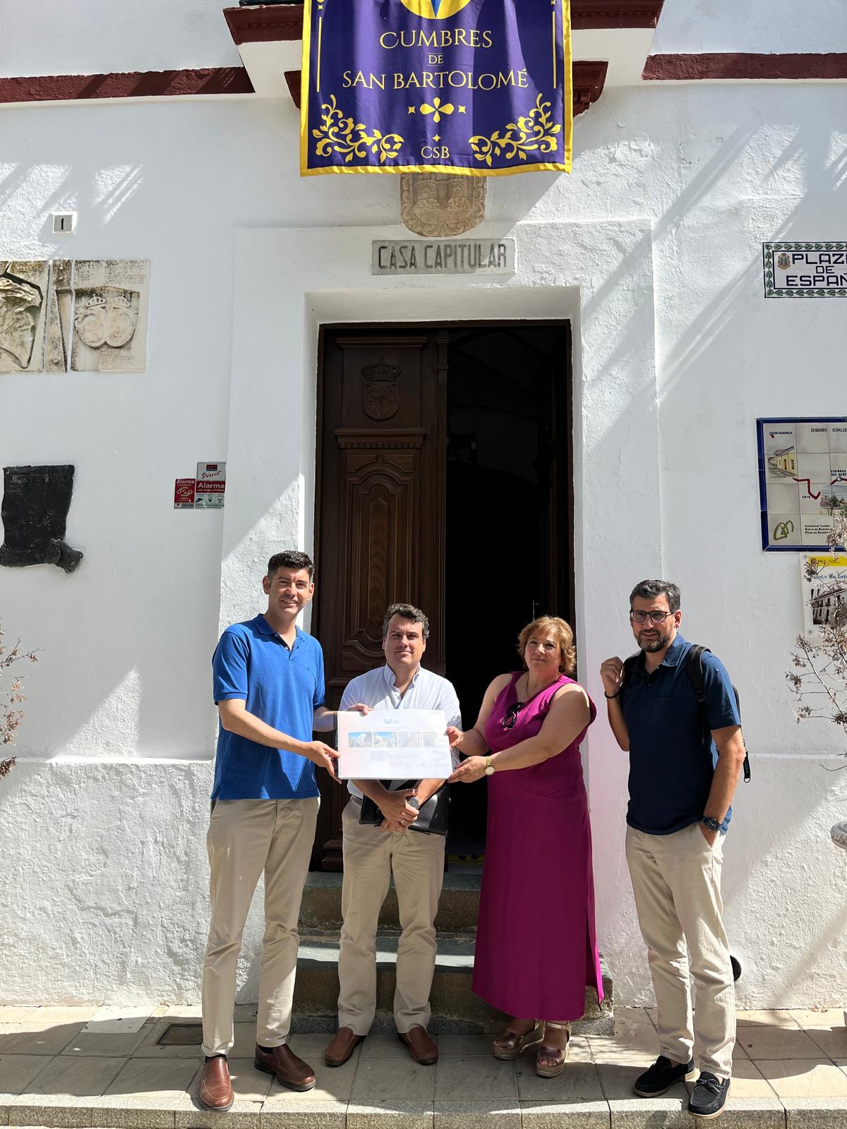 El vicepresidente de Infraestructuras de la Diputación de Huelva, Manolo Cayuela, ha hecho entrega a la alcaldesa de Cumbres de San Bartolomé, María Ángeles Carbajo, del proyecto constructivo de la reforma integral de la travesía de la carretera HU-9105, que atraviesa la localidad de este a oeste. Se trata de una intervención integral de la travesía, que eliminará el asfalto y el estado actual de deterioro que presenta el trazado.