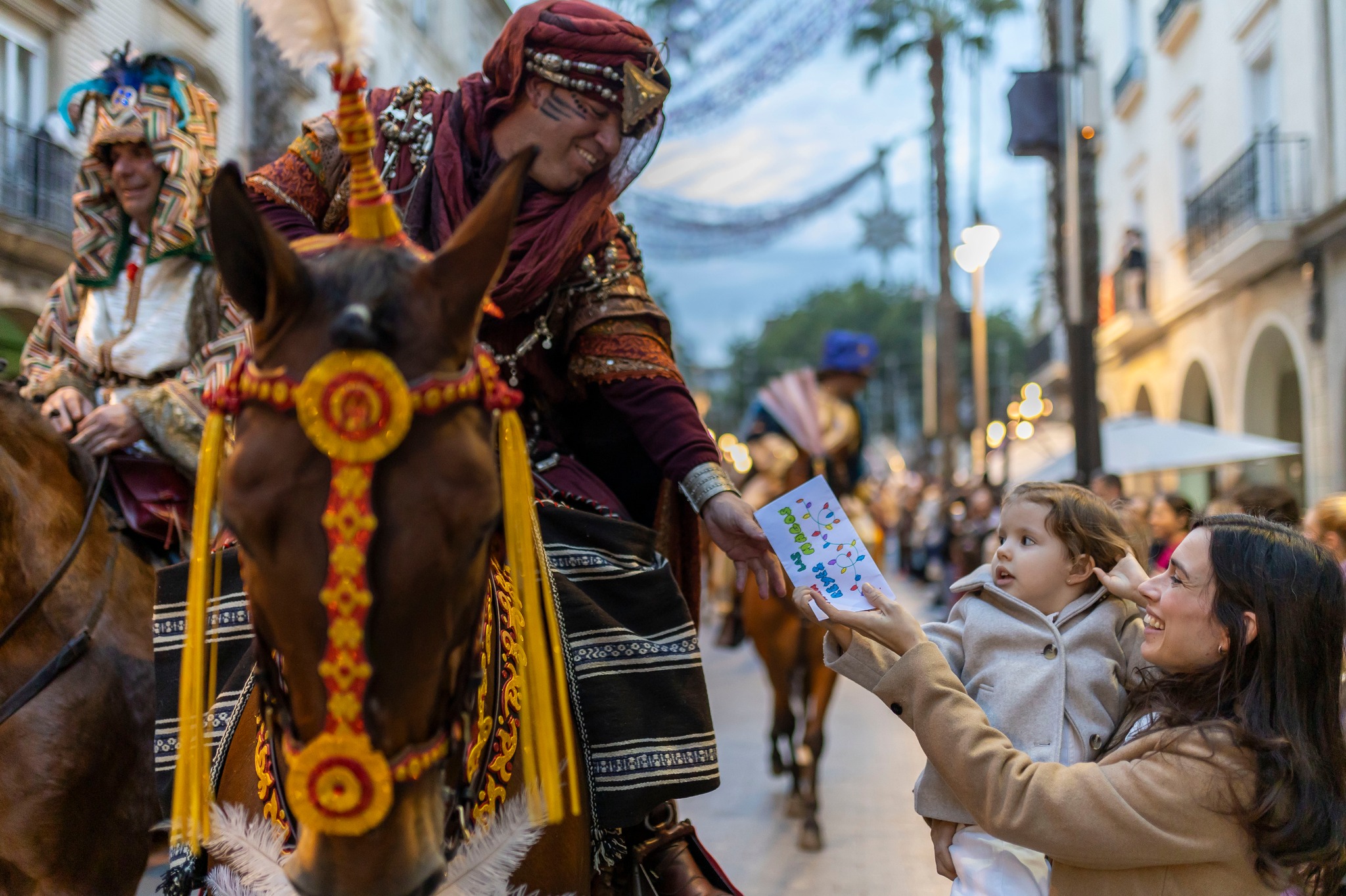 En primer lugar, la Corporación Municipal, presidida por la alcaldesa de Huelva, Pilar Miranda, recibirá a Sus Majestades, a las 10,30 horas, con desembarco previsto en la flamante Marina del Odiel, junto a la Estrella de la Ilusión. Estará esperándole el cortejo, con el Heraldo Real y su caballería, además de la guardia de a pie, una yunta de bueyes y un carro de mulos que portarán los regalos, la Banda de Música de la Santa Cruz y los tres camellos reales, además del blanco corcel, que servirán de transporte a los recién llegados.