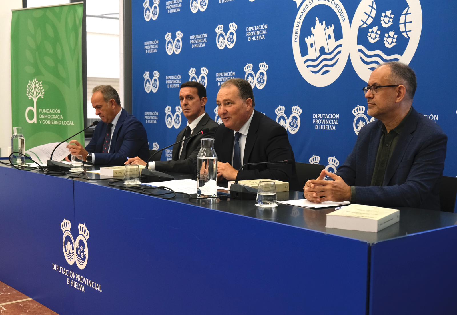 El presidente de la Diputación de Huelva, David Toscano, ha inaugurado la jornada junto al presidente de la Diputación de Almería y de la Comisión de Diputaciones, Cabildos y Consejos Insulares de la FEMP, Javier Aureliano García; el secretario general de la Diputación de Sevilla y coordinador de la jornada, Fernando Fernández-Figueroa; y el director de la Fundación Democracia y Gobierno Local, Alfredo Galán.