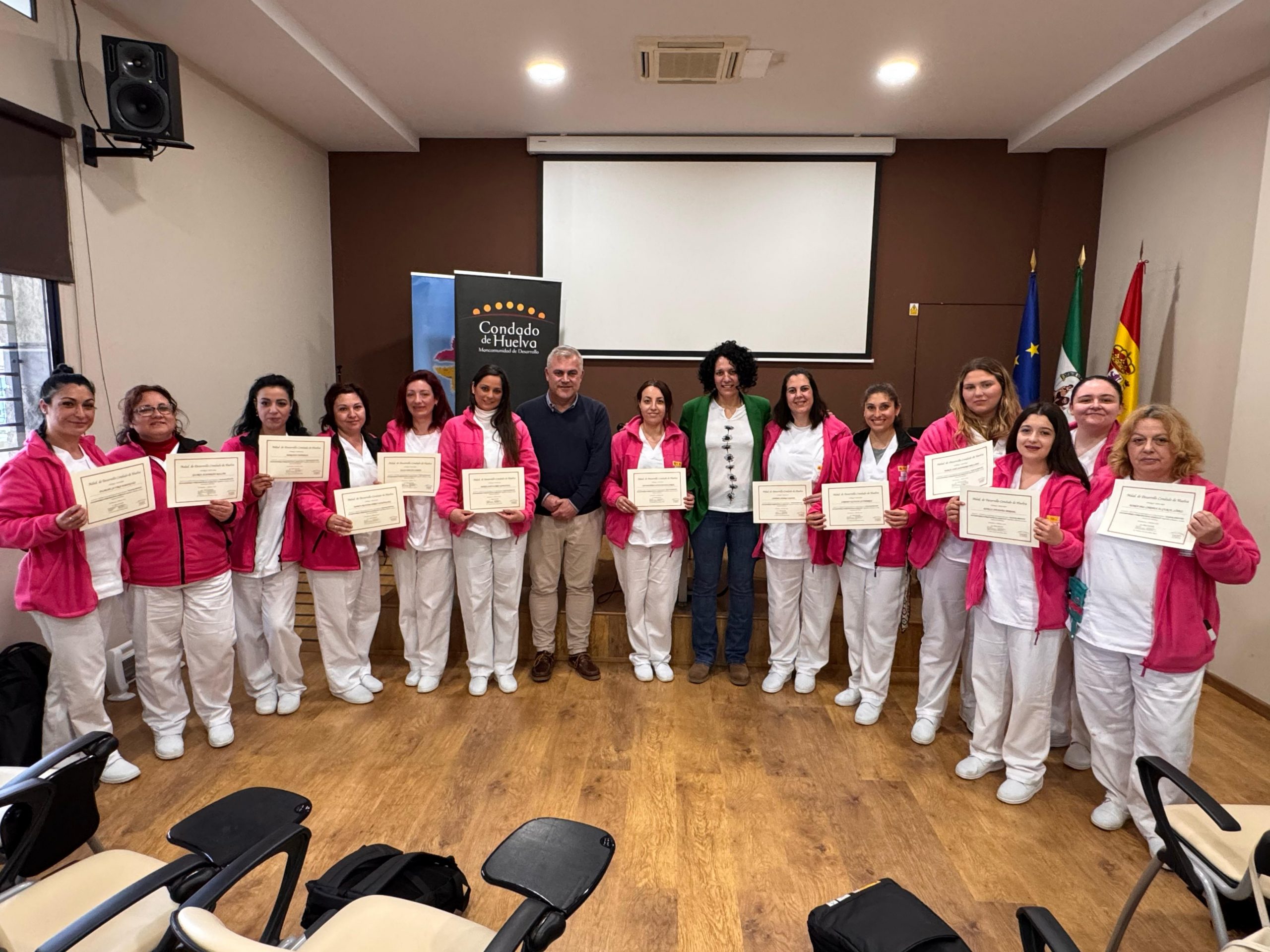 Esta acción formativa, financiada por la Consejería de Empleo, Empresa y Trabajo Autónomo de la Junta de Andalucía, se ha impartido en la sede de la Mancomunidad de Desarrollo Condado de Huelva durante seis meses y está reconocida con certificado de profesionalidad de nivel 2 que comprende un total de 600 horas. Además de las 480 horas de los módulos teóricos formativos, se incluye un periodo de prácticas profesionales de 120 horas que estas alumnas han realizado en la empresa pública del Ayuntamiento de Almonte, SADA, y en MACROSAD, en los municipios de La Palma del Condado, Niebla y Rociana del Condado.