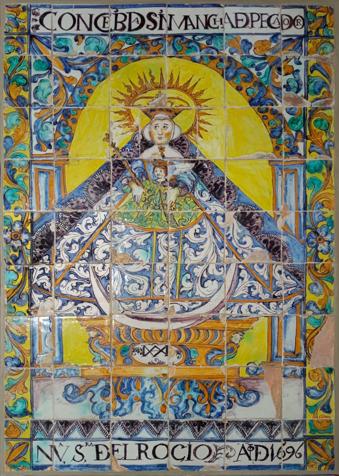 El Retablo Cerámico de la Virgen del Rocío que presidía la Puerta del Sol de la antigua ermita de la aldea almonteña, fechado en 1696, ha recuperado su orden y diseño original, reintegrándose la cara primitiva, que estaba en paradero desconocido cuando se montó por primera vez en el año 2000, y que se incorporó a los fondos de los Tesoros del Santuario del Rocío en 2014.