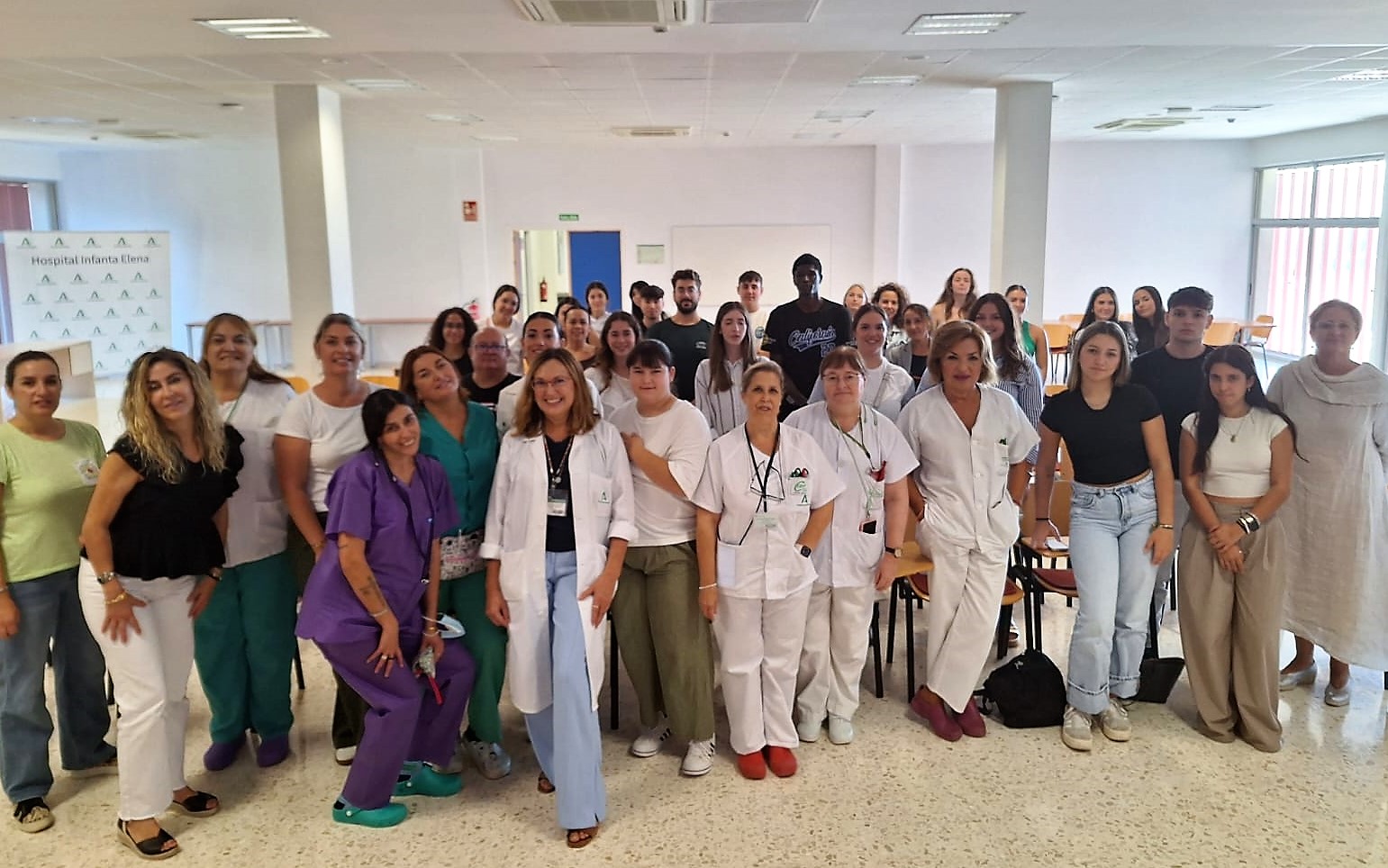El Hospital Infanta Elena ha dado la bienvenida esta semana al primer grupo de los 170 alumnos procedentes de distintos ciclos formativos de grado medio y superior que inician su periodo de prácticas en el centro, dentro del programa que mantiene el hospital con los institutos y centros educativos de la provincia. Con esta actividad se consolida un año más el papel del Infanta Elena como aula de formación en competencias técnicas y en valores profesionales, en la que los alumnos tienen la oportunidad de vivir en primera persona el funcionamiento real de un entorno sanitario.
