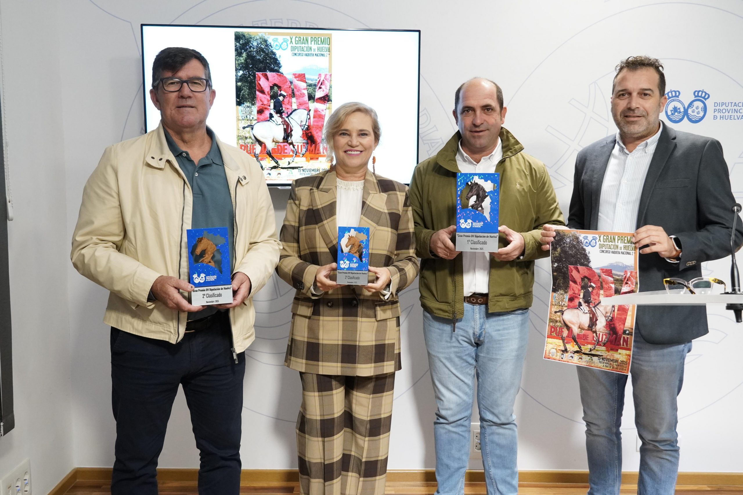 La diputada de Cultura, Gracia Baquero, el alcalde de Puebla de Guzmán, Antonio Beltrán y el presidente de la Asociación Hípico Cultural del Andévalo, Tomás Mora, han presentado este Gran Premio Diputación de Huelva de Doma Vaquera que se iniciará a partir de las doce del mediodía.