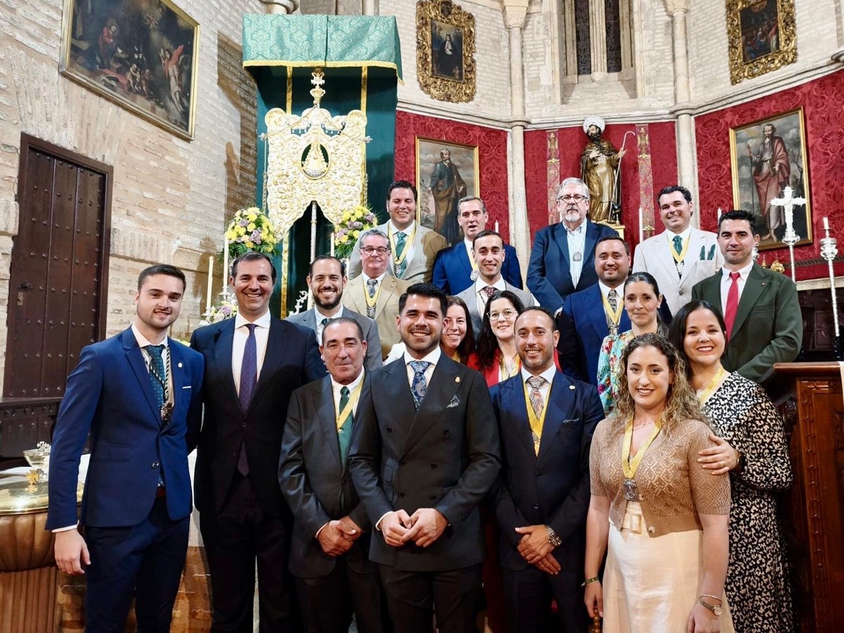 En representación municipal asistieron el alcalde de Trigueros, Vidal Blanco, y el concejal de Cultura, Benito Conde, quienes acompañaron a la Hermandad en una cita señalada dentro de los cultos previos a la próxima Romería de Pentecostés.