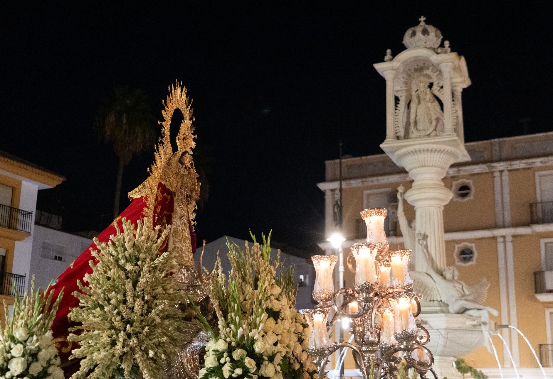 Luciendo sus mejores galas y portando junto a numerosas reliquias y elementos artísticos el bastón de Alcaldesa Perpetua de la ciudad, la Virgen recorrió durante 4 horas las calles y plazas de la localidad a los sones de la espectacular Banda Sinfónica del Liceo.