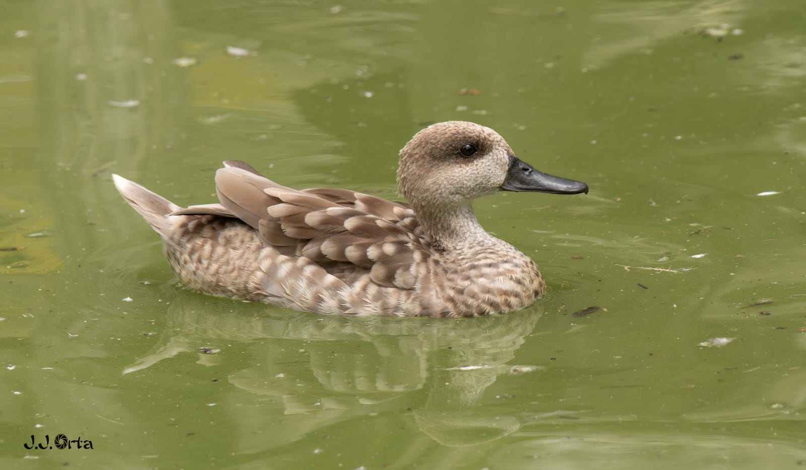La Cerceta pardilla es un pato pequeño con plumaje moteado y una franja oscura alrededor de los ojos. Vive en humedales con mucha vegetación, donde encuentra refugio y alimento. Sus principales amenazas son la pérdida de hábitat, la contaminación del agua y la caza ilegal.