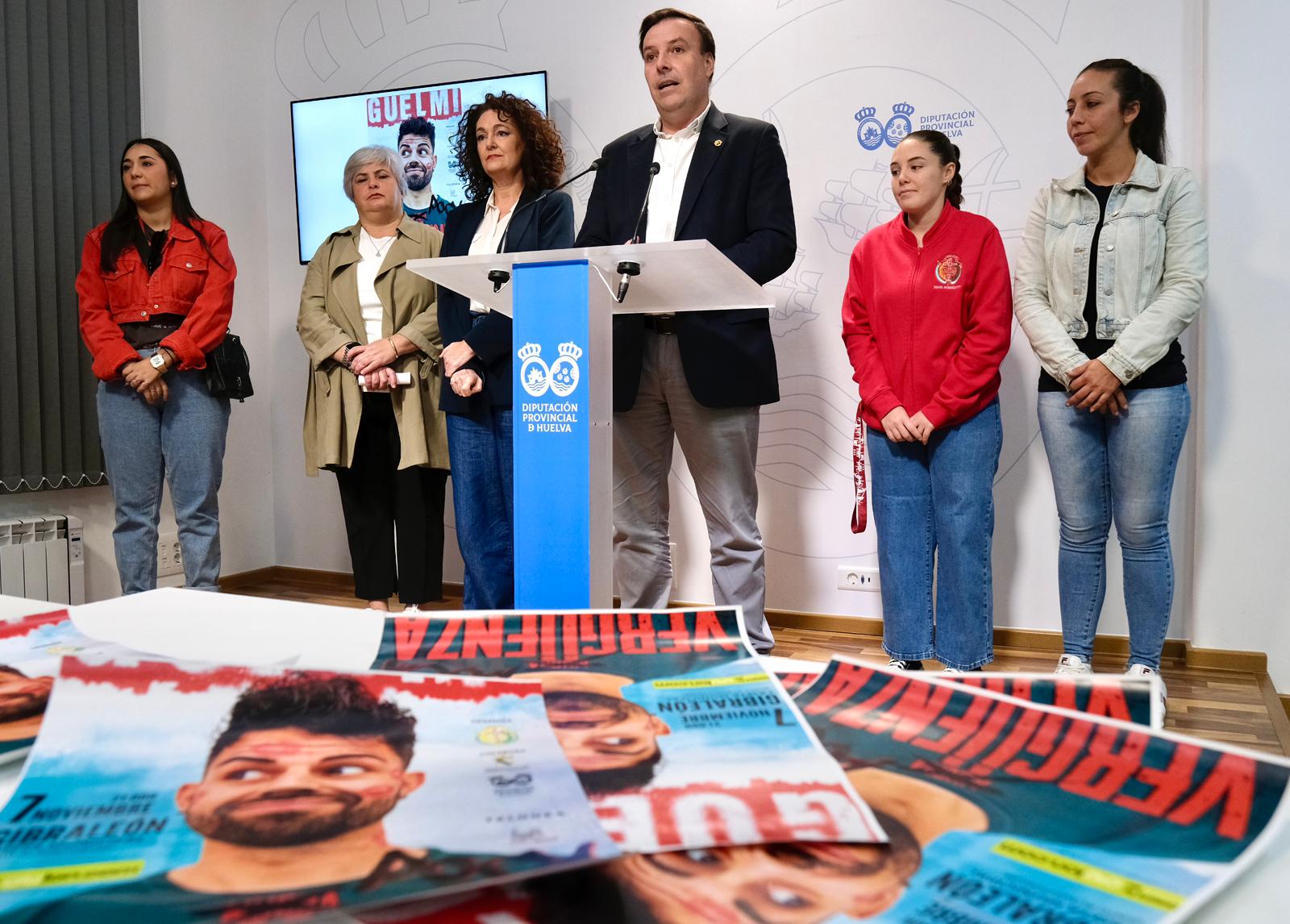 La Diputación de Huelva ha acogido la presentación del espectáculo benéfico “Poca Vergüenza”, del popular monologuista Guelmi, que se celebrará el próximo 7 de noviembre a las 21:00 horas en la nave municipal situada junto al Auditorio de Gibraleón.