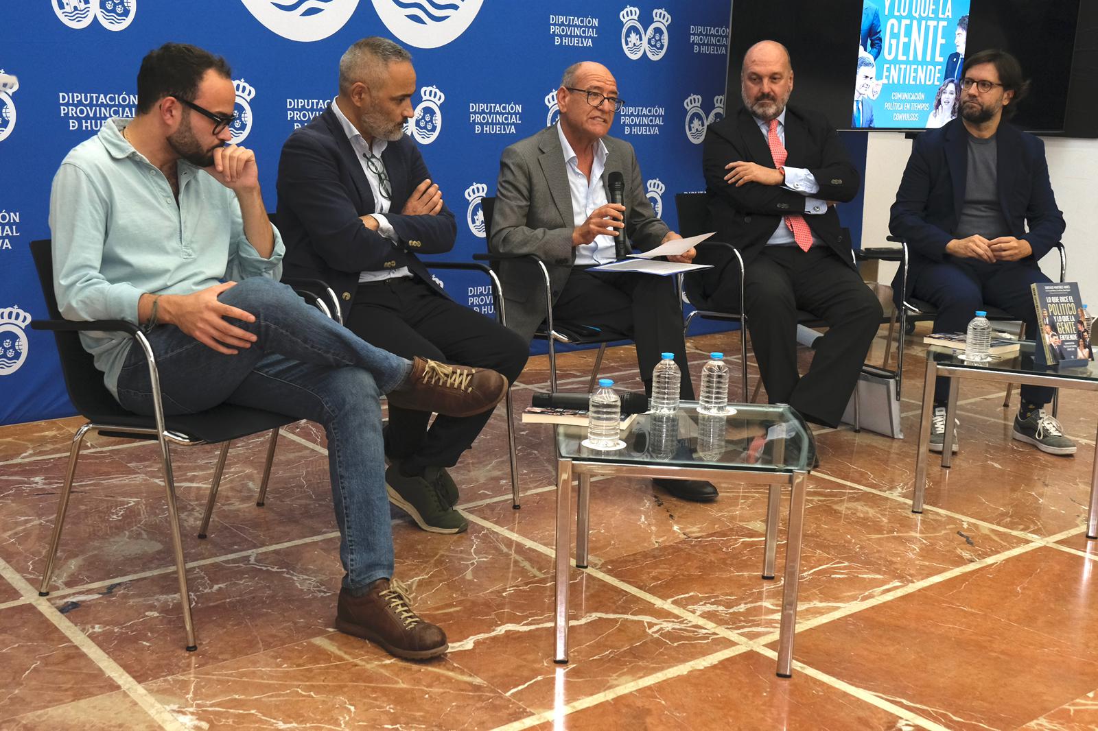 La Diputación de Huelva ha acogido, esta tarde, la presentación del libro “Lo que dice el político y lo que la gente entiende”, una obra escrita por el periodista y consultor de comunicación Santiago Martínez-Vares, junto a Curro Pérez, Fernando Matres y Santi Gigliotti, donde se analiza con rigor y cercanía los códigos del discurso político y la compleja relación entre quienes hablan y quienes escuchan.