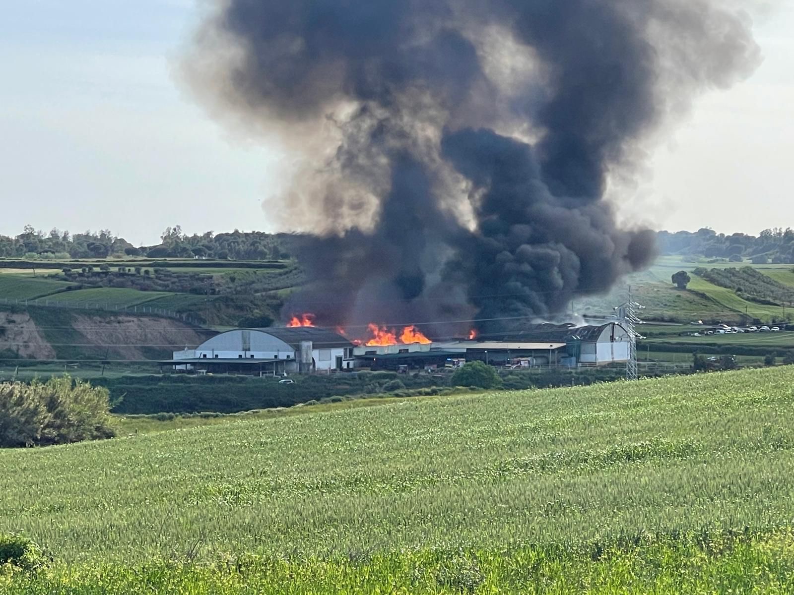 El Consorcio Provincial de Bomberos de Huelva ha desplegado un «importante operativo» en las inmediaciones de la nave afectada, en la carretera A-493 dirección La Palma del Condado.