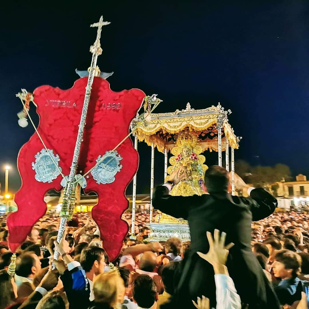 La jornada culminará ya entrada la medianoche, cuando la carreta del Simpecado rodeada de los peregrinos llenos de la dicha indescriptible de haber alcanzado un año más la meta.