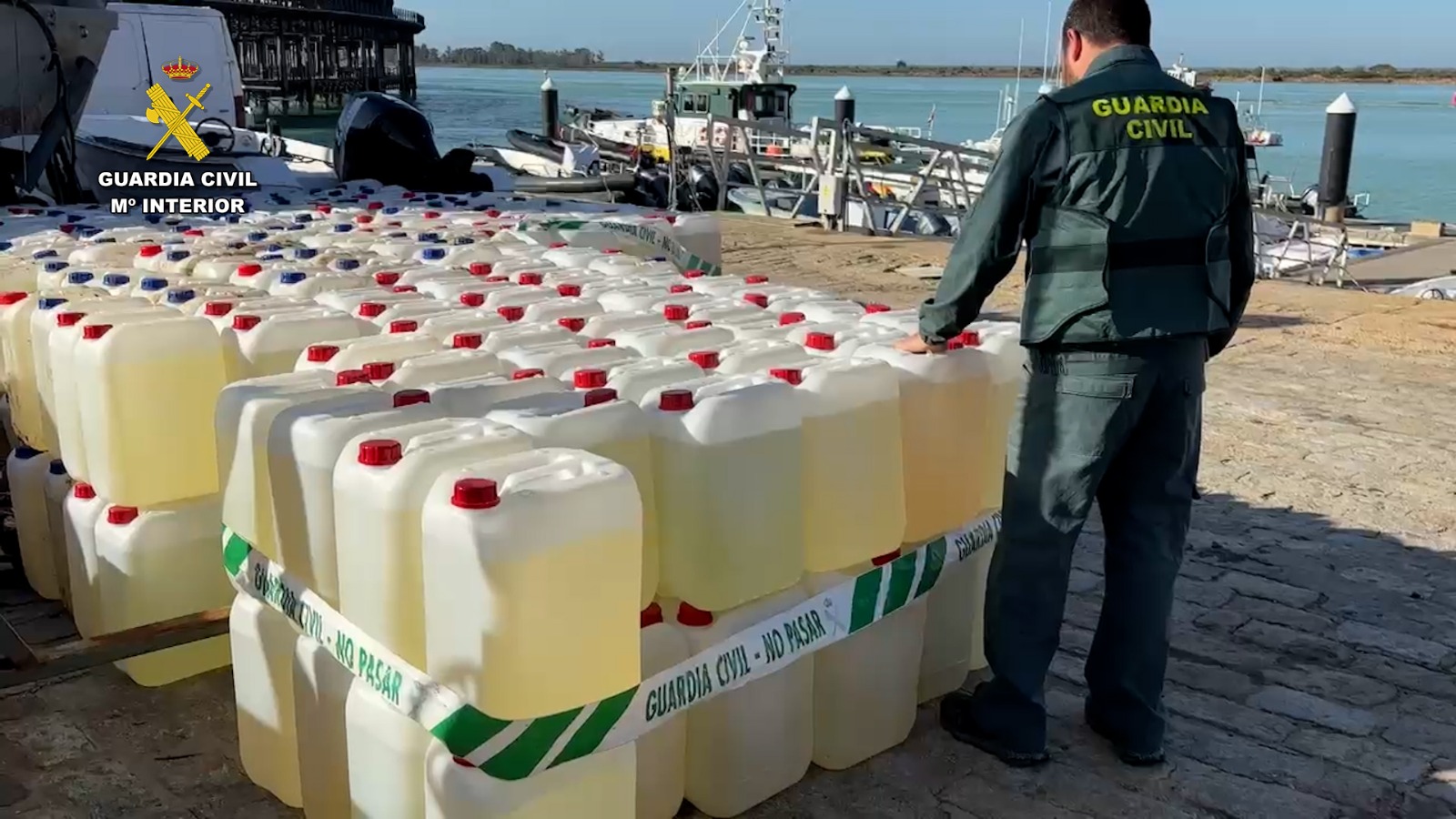 La Guardia Civil ha intervenido 433 garrafas de combustible en la localidad de Lepe, las cuales podrían estar relacionadas con el apoyo logístico a narcolanchas. Los hechos ocurrieron la madrugada de ayer, cuando los agentes procedieron a inspeccionar una finca del término municipal de Lepe, siendo localizadas tres furgonetas, así como 433 garrafas que contenían combustible, en el interior de un inmueble de aperos.