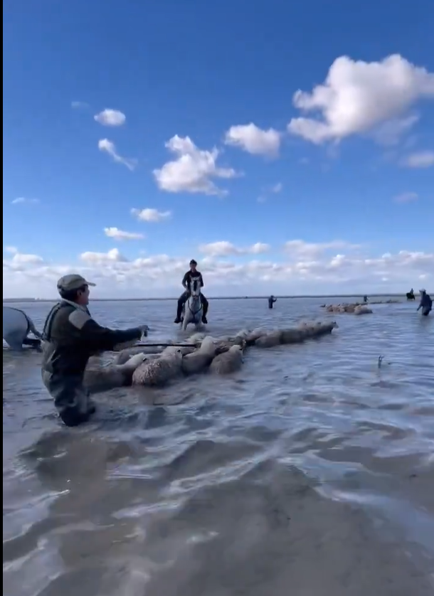 Las impactantes imágenes, difundidas por la cuenta de ‘X’ MeteoAlmonte, muestran a los ganaderos con el agua por encima de las rodillas, trasladando a los animales a zonas seguras. Este domingo, se llevaron a cabo labores de mudanza del ganado, en las que caballos, borregas y vacas fueron trasladados del Rincón del Pescador al Muro para garantizar su protección.
