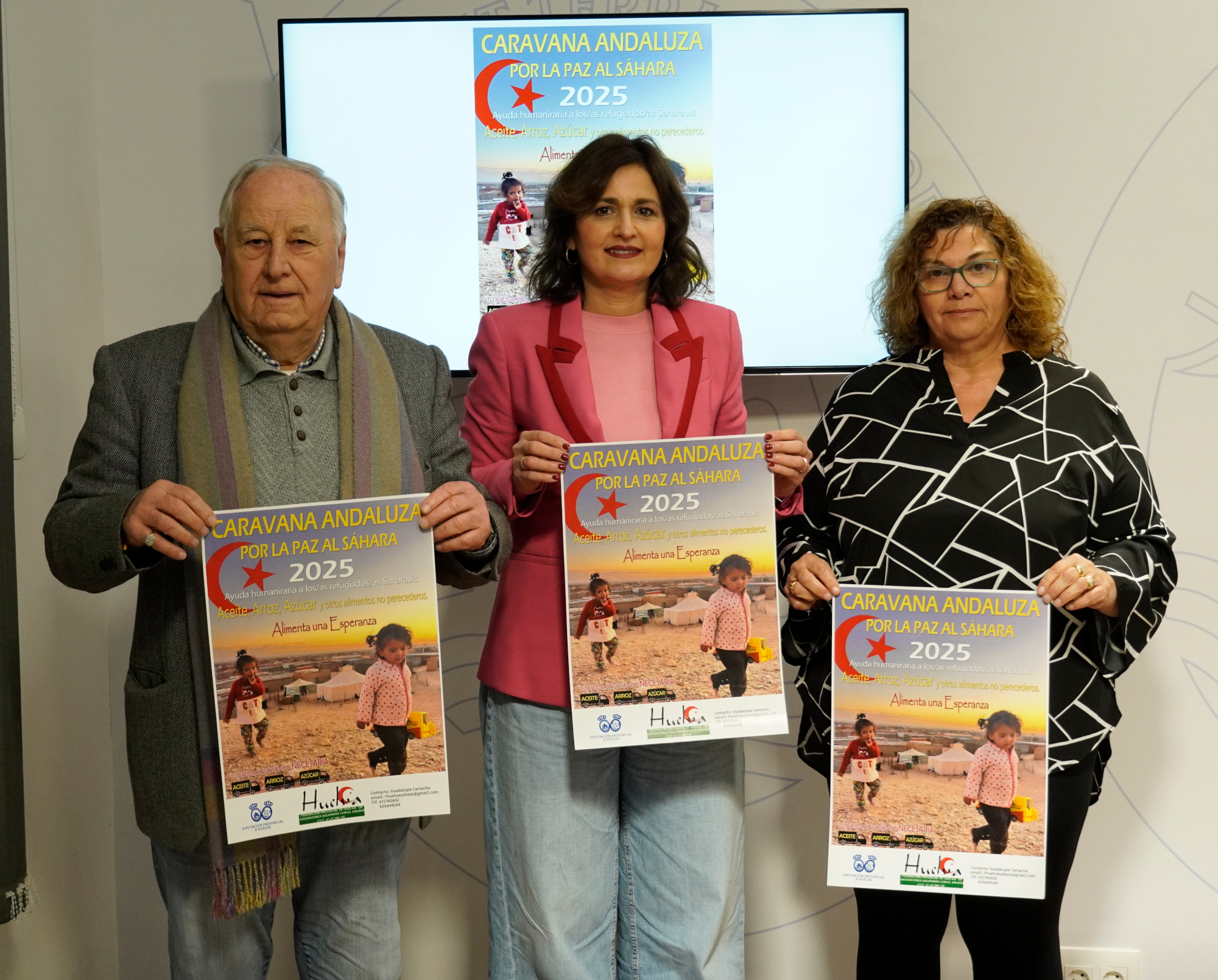 La Diputación de Huelva y la Federación de Asociaciones Solidarias con el Sáhara de Huelva han presentado la ‘Caravana por la Paz 2025’, campaña destinada a la recogida de ayuda humanitaria para los campamentos de refugiados en Tindouf (Argelia). La diputada de Asuntos Sociales, Carmen Díaz, y los representantes de la Federación han hecho un llamamiento a la solidaridad de toda la provincia de Huelva, que cada año hace posible reunir toneladas de alimentos y material humanitario.