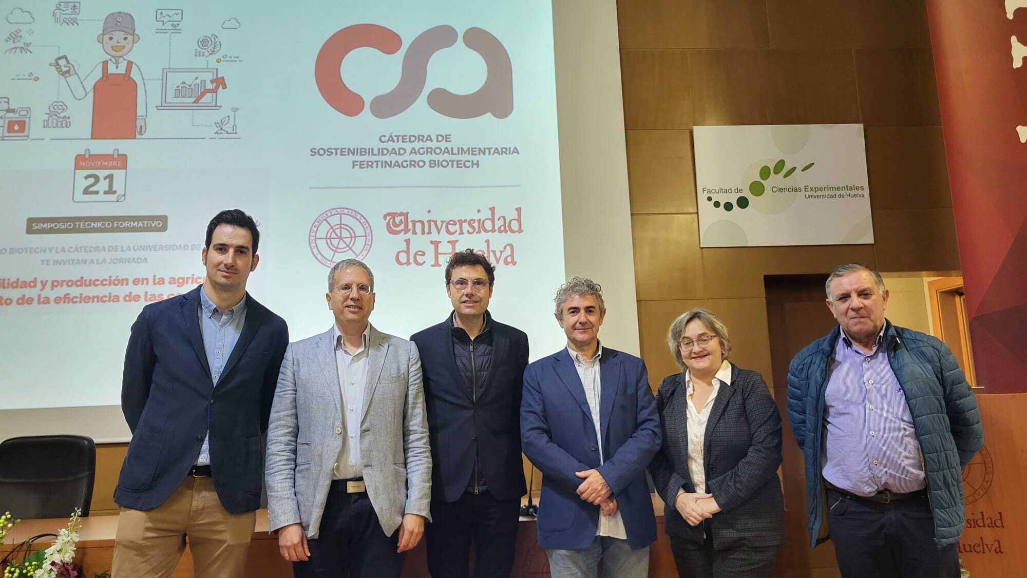 El evento, celebrado en el salón de actos de la Facultad de Ciencias Experimentales, ha contado con la participación de estudiantes y profesorado de la UHU e ingenieros agrícolas y técnicos de Fertinagro-Biotech.