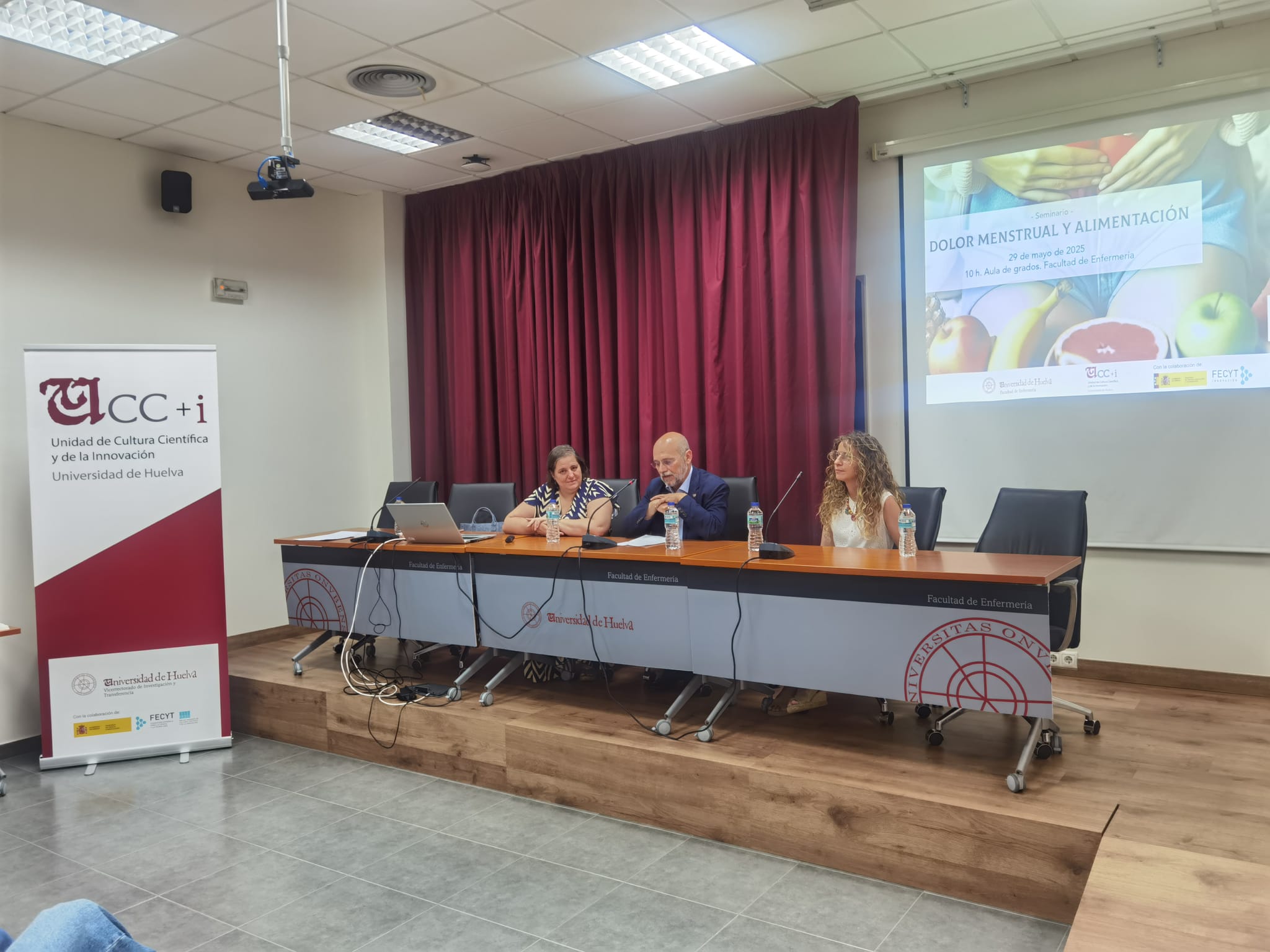 El Aula de Grados de la Facultad de Enfermería de la Universidad de Huelva ha acogido el seminario `Dolor menstrual y alimentación´, una actividad divulgativa que reunió a cerca de una veintena de mujeres en un espacio de conocimiento, reflexión y empoderamiento sobre salud menstrual.