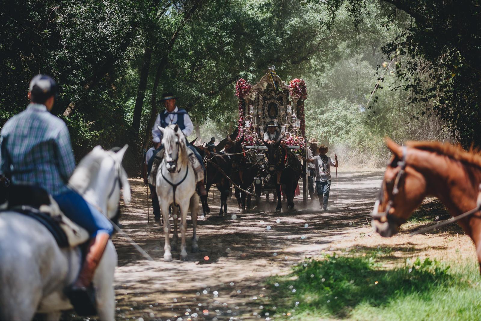 Y cuando la noche cerrada haga destellos, Palos impaciente estará, esperando una nueva amanecía y ver a los almonteños bajo el sol de la mañana a la esquina de Gines llegar.