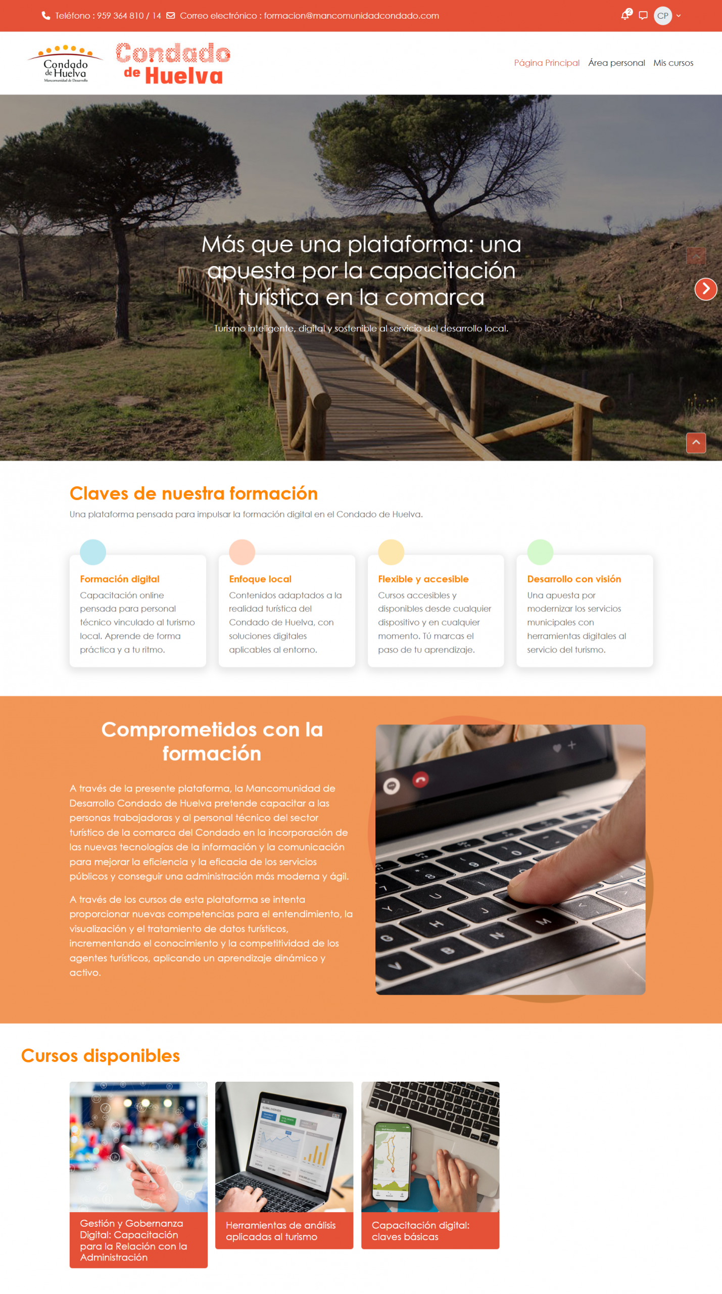 La Mancomunidad de Desarrollo Condado de Huelva ha puesto en marcha una plataforma de teleformación, disponible en teleformacionmancondado.com, para facilitar el acceso a la formación online y gratuita para la ciudadanía y los agentes del sector turístico de la comarca. Esta actuación forma parte del Plan de Sostenibilidad Turística en Destino (PSTD) Litoral-Condado de Huelva.