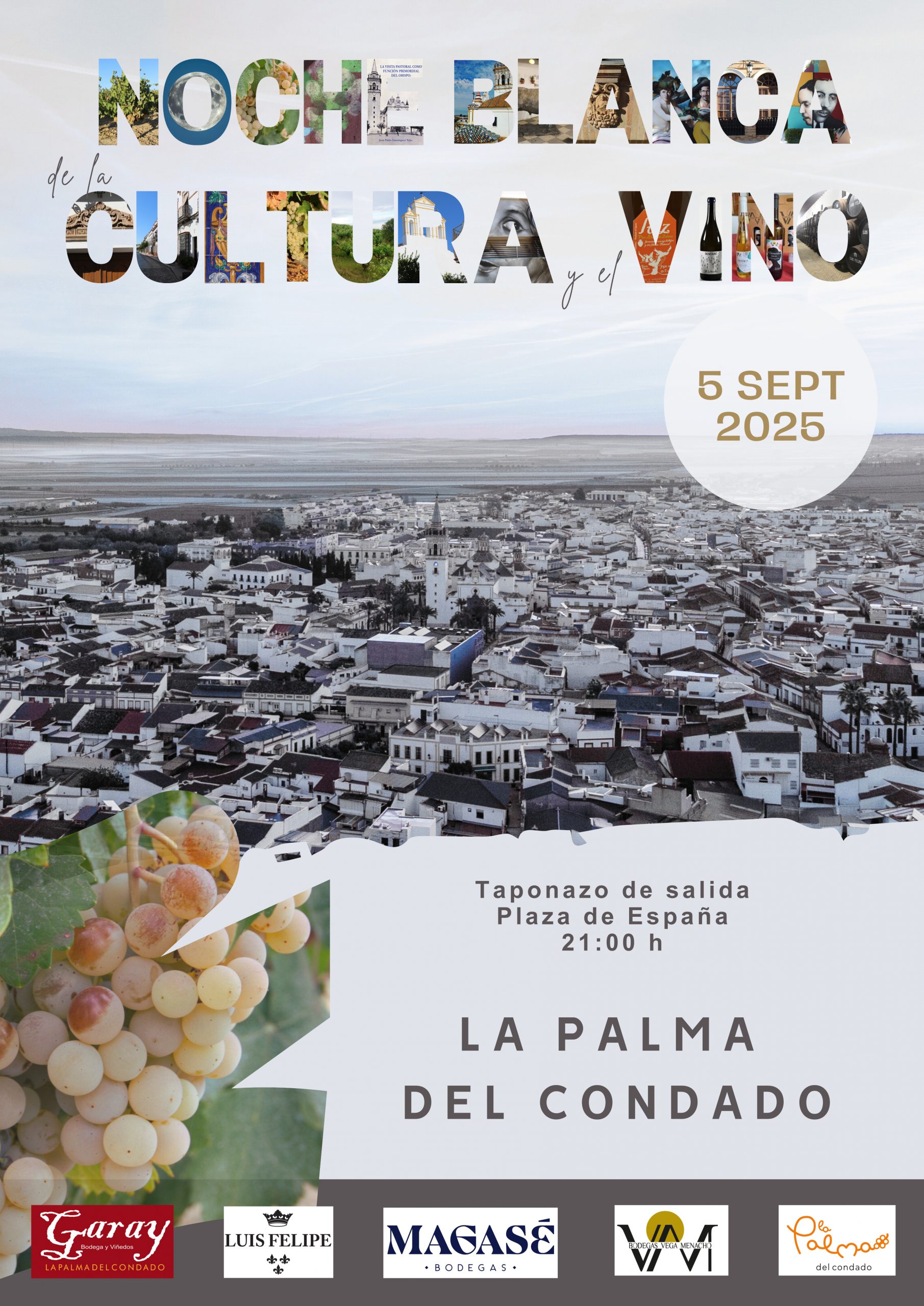 La Palma del Condado se prepara para vivir una experiencia única con la “Noche Blanca de la Cultura y el Vino”, un evento que fusiona arte, tradición, música, gastronomía y los excelentes vinos locales. La cita tendrá lugar este viernes 5 de septiembre, desde las 21:00 horas hasta las 03:00 de la madrugada, en diferentes espacios emblemáticos del municipio.