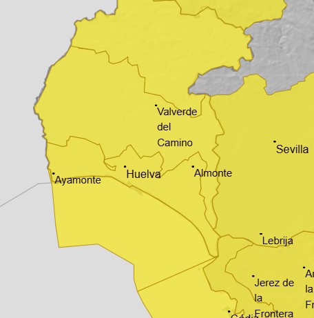 La provincia de Huelva se mantiene este jueves 5 bajo aviso amarillo por fenómenos meteorológicos, según el mapa de alertas de la Agencia Estatal de Meteorología (Aemet), que muestra avisos de nivel amarillo y naranja en buena parte del territorio andaluz.