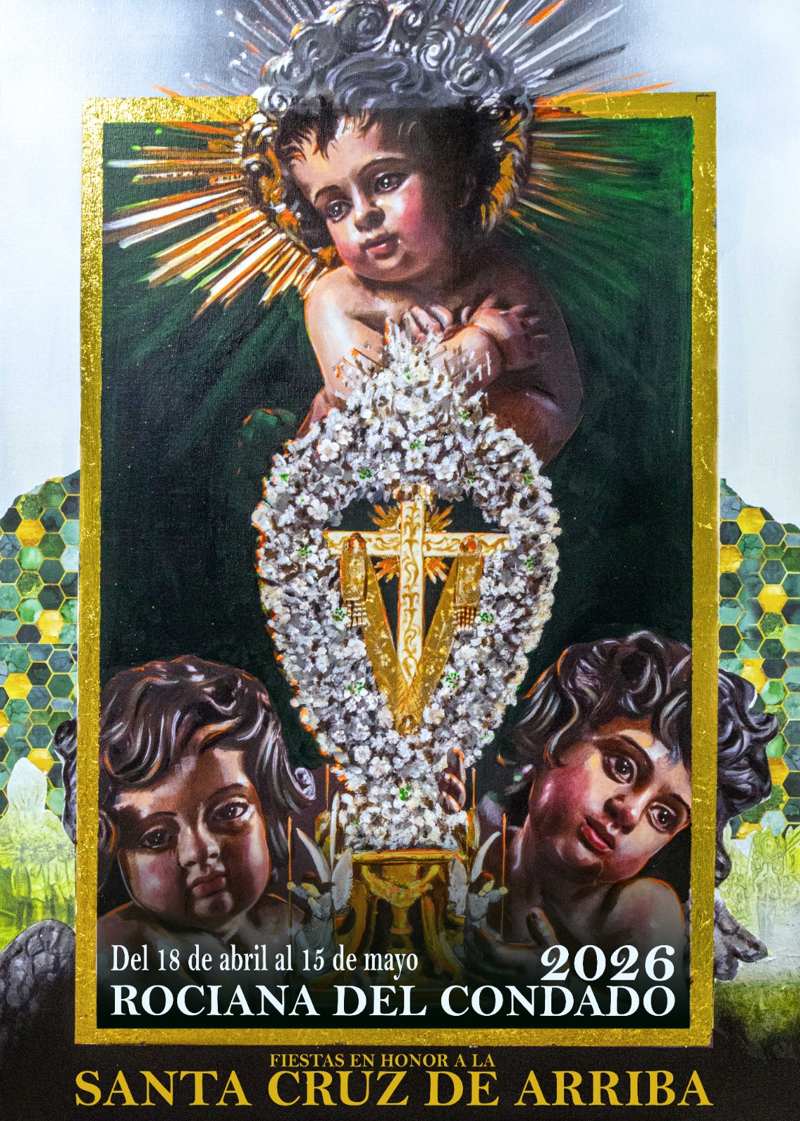 El artista ha detallado que el cartel combina elementos simbólicos y espirituales, como la composición triangular que evoca la Trinidad o la representación del Niño Jesús en la parte superior, aludiendo a la Resurrección. Asimismo, ha incorporado guiños a la tradición, como los angelitos inspirados en esculturas de Elías Rodríguez, escenas de la procesión o referencias al obrador de dulces, “todo ello en una obra que busca reflejar tanto la devoción como el carácter festivo de la Cruz”.