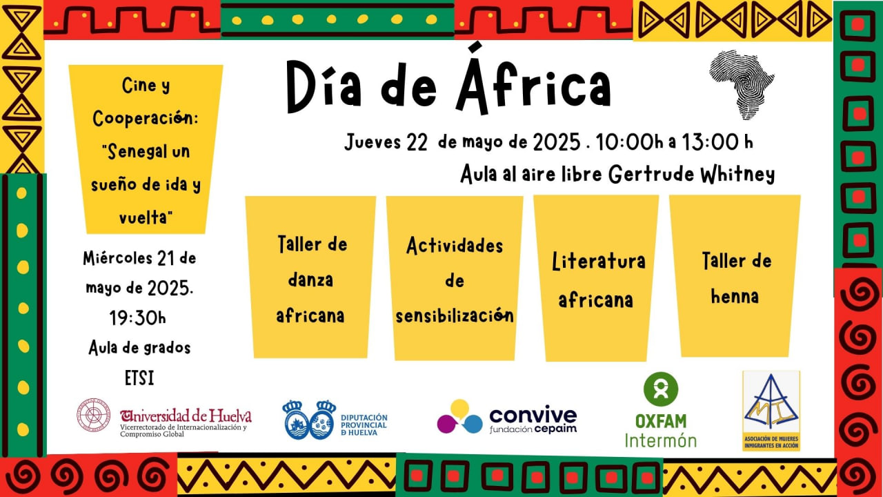 Este año será la 3ª edición de la Celebración del Día de África y se desarrollará en dos sesiones. La primera de ellas, tendrá lugar la tarde de este miércoles, 21 de mayo, con la proyección del largometraje documental `Senegal, un sueño de ida y vuelta´, en el aula de grados de la Escuela Técnica Superior de Ingeniería (ETSI). El documental, dirigido por Marcos Gualda y protagonizado por la cantaora onubense Rocío Márquez, será proyectado gracias a la colaboración de la Diputación de Huelva.