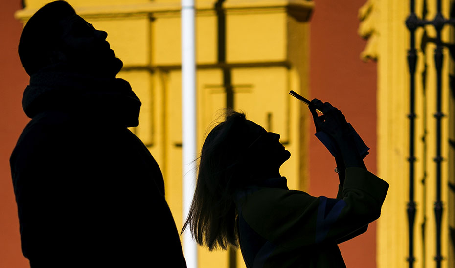 GRA255. MÁLAGA, 13/01/2016.- Una turista fotografía hoy con su teléfono la catedral de Málaga. El consejero andaluz de Turismo y Deporte, Francisco Javier Fernández, ha anunciado hoy que Andalucía acaba de cerrar un año "excelente en los registros turísticos", cuyos datos concretos hará públicos durante la Feria Internacional de Turismo (Fitur), que se celebrará en Madrid entre el 18 y el 22 de enero próximos. EFE/Jorge Zapata.