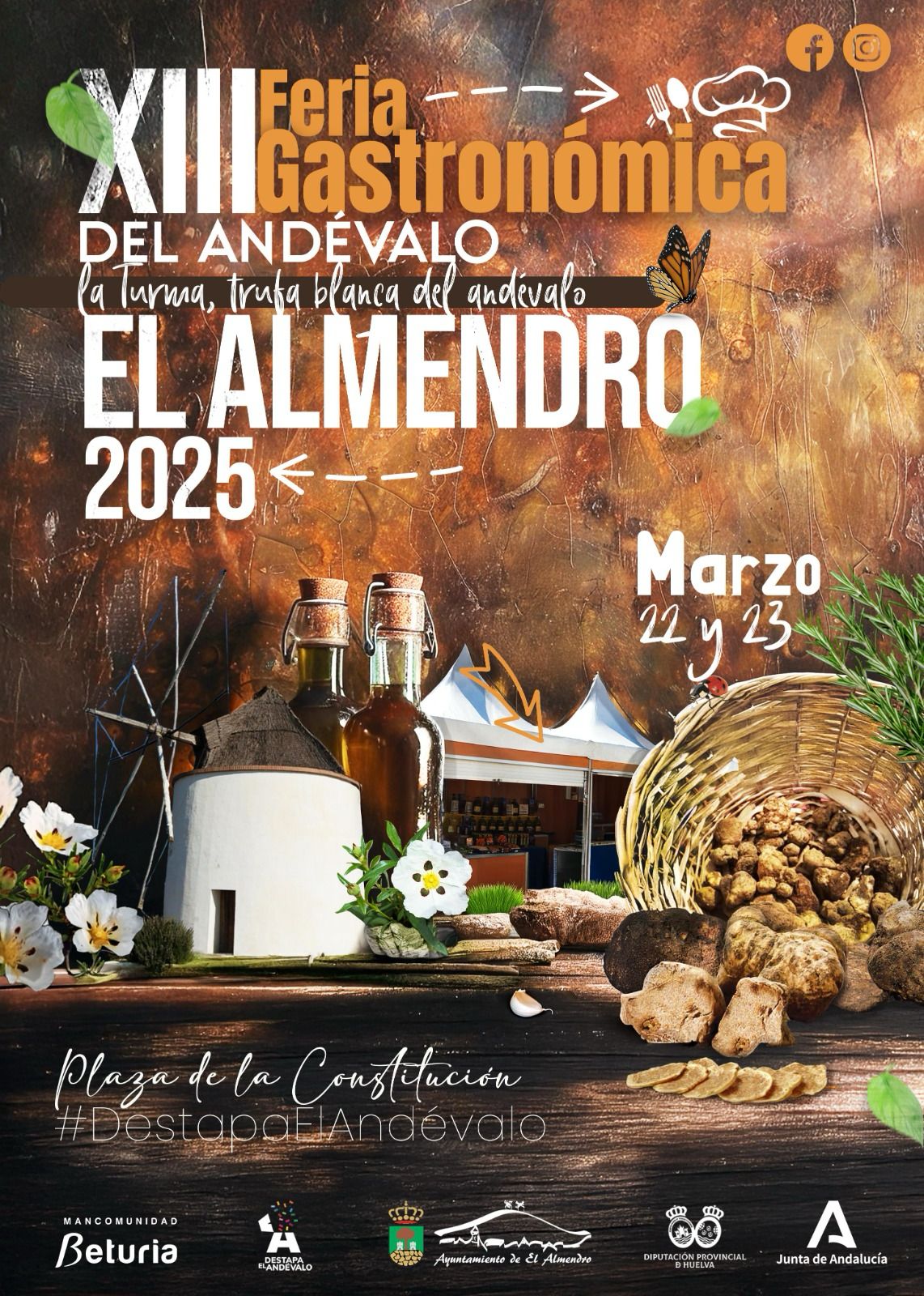La XIII Feria Gastronómica de El Andévalo tendrá lugar en el municipio de El Almendro durante el 22 y 23 de marzo de 2025, manteniéndose y consolidándose como evento gastronómico referente en nuestra provincia.