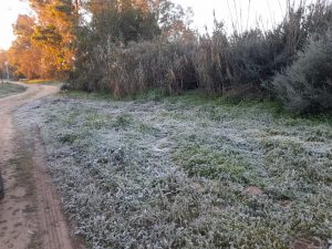 Cuando todavía el sol está escondido en el Mediterráneo, y la más frías y gélidas mañanas de Enero, nos regalan paisajes blancos , verdes y cristalinos cuando levantan esas nueves blancas que no dejan ver mucho más de la belleza en el Condado de Huelva, los campos gritan que el amarillo brille y deje ese color grisáceo que nos invita a la tristeza, al miedo a temperaturas no agradables para los seres vivos. Pero a la vez necesarios, esas heladas de Enero, son agua para la tierra, son prosperidad para los campos ya sembrados de trigo (el pan nuestro de cada día) , cosechas ya plantadas que aunque en algunos casos sean dañinos en otras son vida.