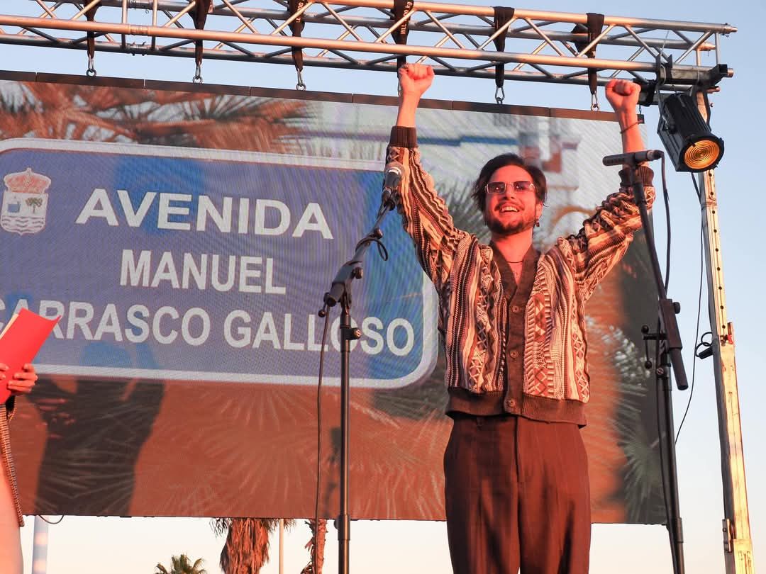 Desde este lunes Manuel Carrasco tiene una avenida con su nombre en su municipio natal, Isla Cristina, donde ha descubierto la placa.