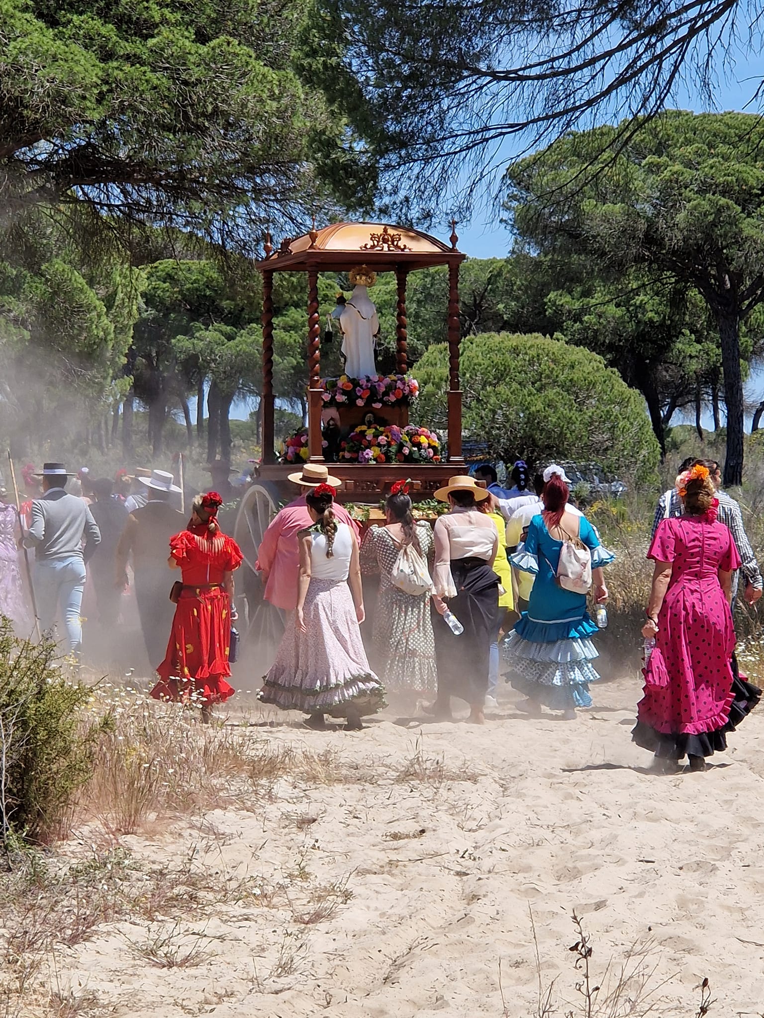 La Asociación Romeros del Carmen impulsa esta celebración en el hermoso paraje del antiguo Poblado Forestal de Mazagón, cuyas infraestructuras, servicios y vigilancia pone en marcha cada año el Ayuntamiento de Moguer.