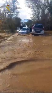 Agentes del SEPRONA, que se encontraban próximo al lugar realizando servicios de vigilancia por riesgo de inundaciones, acercaron el coche patrulla hasta el vehículo atrapado, consiguiendo rescatar al conductor y dirigirlo hasta una zona segura, sin sufrir ningún tipo de lesiones físicas.