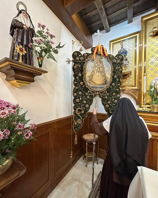 Hace unos días se anunciaba la llegada del Simpecado Verde de la Hermandad Matriz a la Casa de las Hermanas de la Cruz en Roma, donde permanecerá hasta la llegada de los peregrinos.