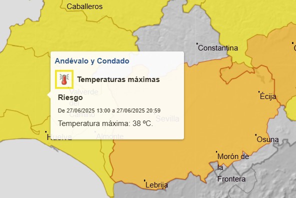 La Agencia Estatal de Meteorología (AEMET) ha emitido un aviso especial por ola de calor que afectará a la provincia de Huelva a partir del viernes 27 de junio. Según las previsiones, se activará el nivel amarillo durante esa jornada, y a partir del sábado se pasará a nivel naranja en zonas como el Condado y el Andévalo, debido a las altas temperaturas que podrían superar los 40 °C.