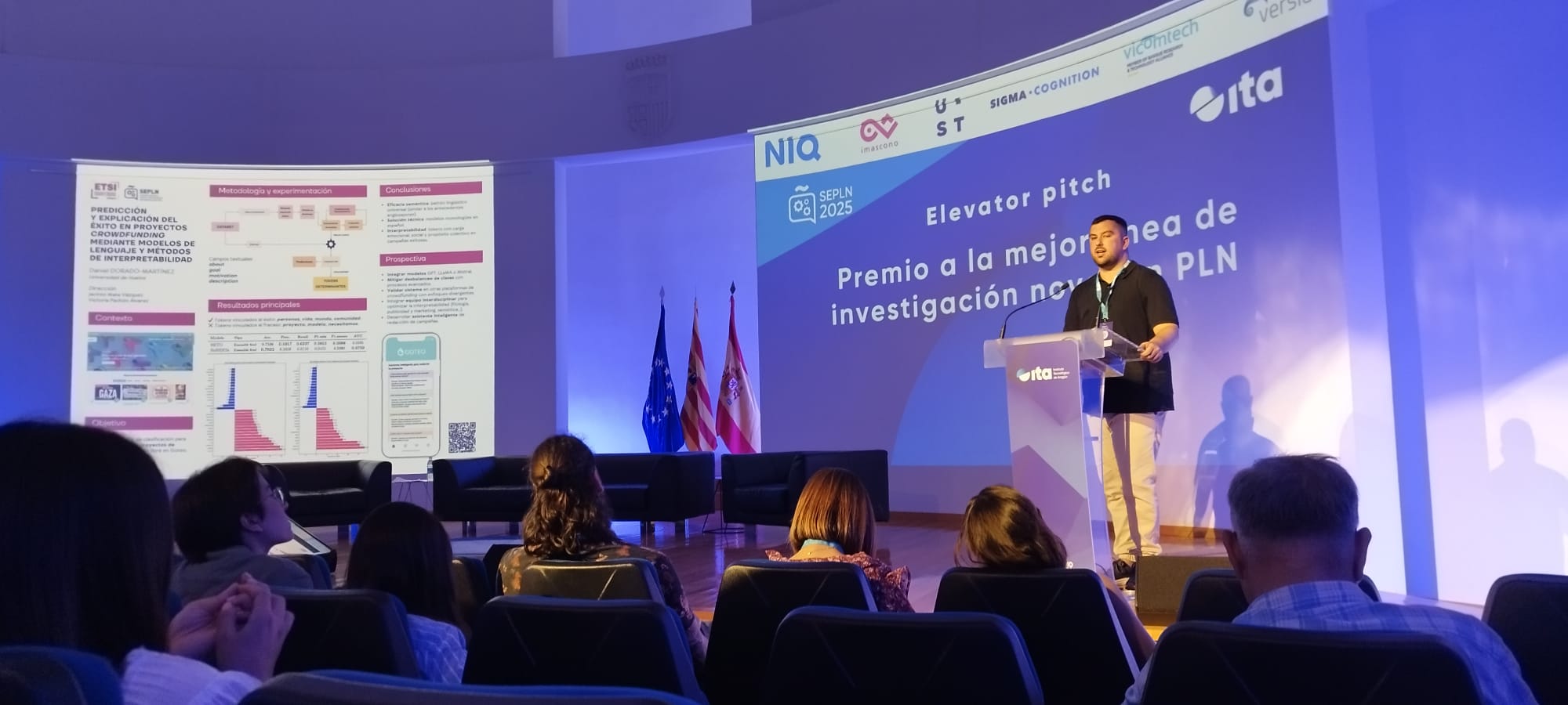 El trabajo premiado, titulado ‘Predicción y explicación del éxito en proyectos de crowdfunding mediante modelos de lenguaje y métodos de interpretabilidad, desarrolla un sistema de inteligencia artificial capaz de anticipar qué campañas de crowdfunding —un modelo de financiación colectiva en el que muchas personas contribuyen con pequeñas aportaciones económicas para impulsar proyectos culturales, sociales, ambientales o emprendedores— tienen más probabilidad de alcanzar sus metas. ´