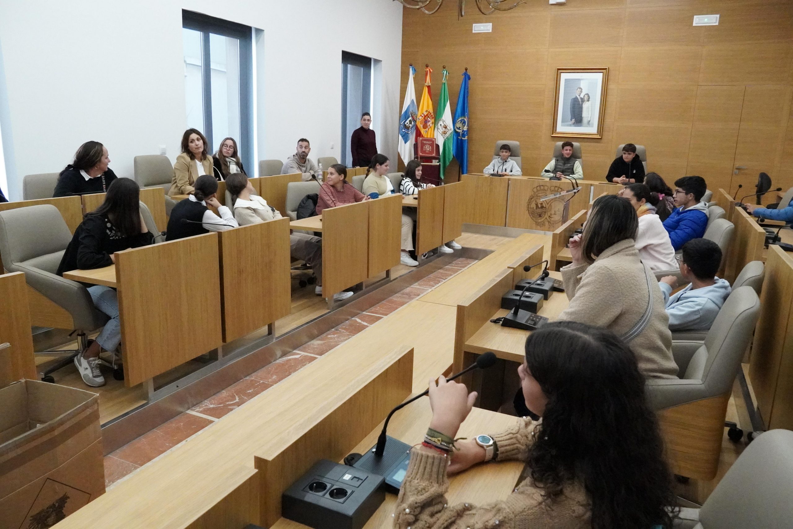 Un grupo de menores de Paymogo, pertenecientes al alumnado de 1º y 2º de ESO, acompañados por algunas familias y profesionales de los Servicios Sociales de la Zona Básica de Servicios Sociales (ZBSS) del Andévalo, han visitado hoy la Diputación de Huelva como parte del proyecto “Creciendo”. Esta iniciativa, centrada en la integración de la comunidad gitana, tiene como objetivo mejorar la calidad de vida de menores y sus familias, abordando temas clave como la economía, la salud y la educación.