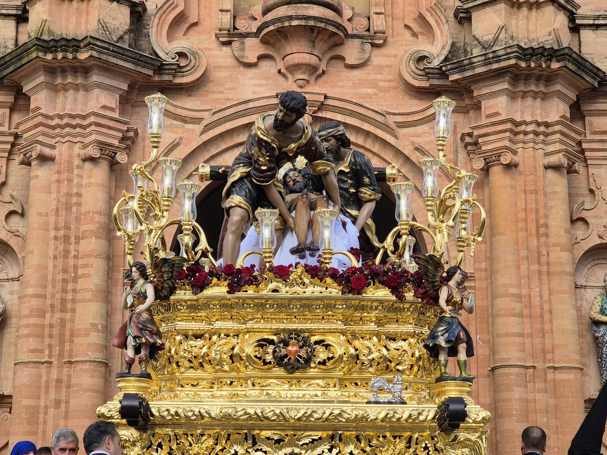 La representación de Cristo yacente al sepulcro tras descenderlo de la Cruz se puede admirar en el primer paso. El Cristo de la Buena Muerte es obra de Antonio Pinto Soldán, encarnado por Santiago Martínez. Los Santos Varones: Nicodemo y José de Arimatea, María Magdalena y San Juan son obras de Joaquín Moreno Daza.