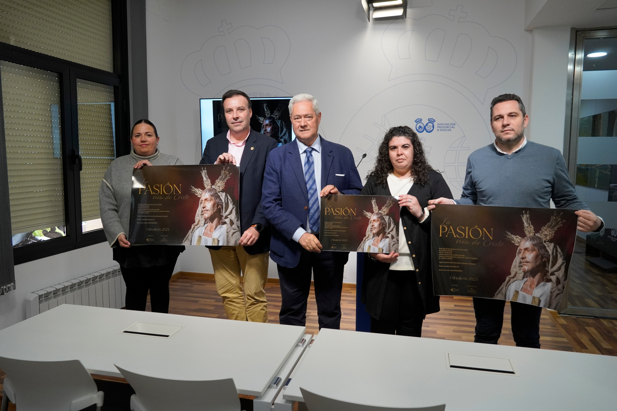 El diputado provincial, José Carlos Roda, junto con el presidente de la Asociación Obras Cristianas de Gibraleón, Jesús Mora, han presentado esta nueva edición, la 47, de La Pasión Viva de Cristo. Una representación que tiene un marcado carácter solidario, como ha explicado Roda, y cuyos beneficios recaudados serán destinados a dos proyectos que lleva a cabo la Fundación Padre Diego en México y Camerún.